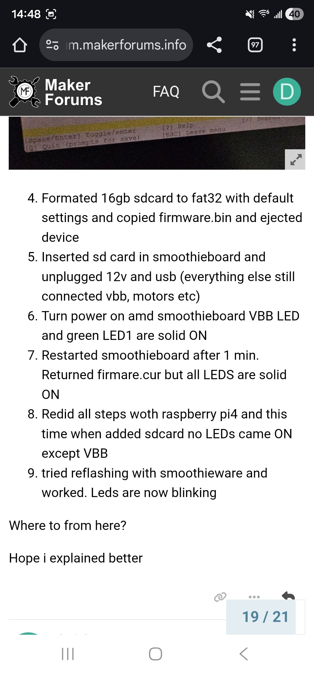When i put on sd card from pi3 or pi4 (tried 3 diff sd cards) and turn on amoothieboard (vbb connected and usb disconnected) vbb and LED1 are solod on. If i restart all leds are going solid ON